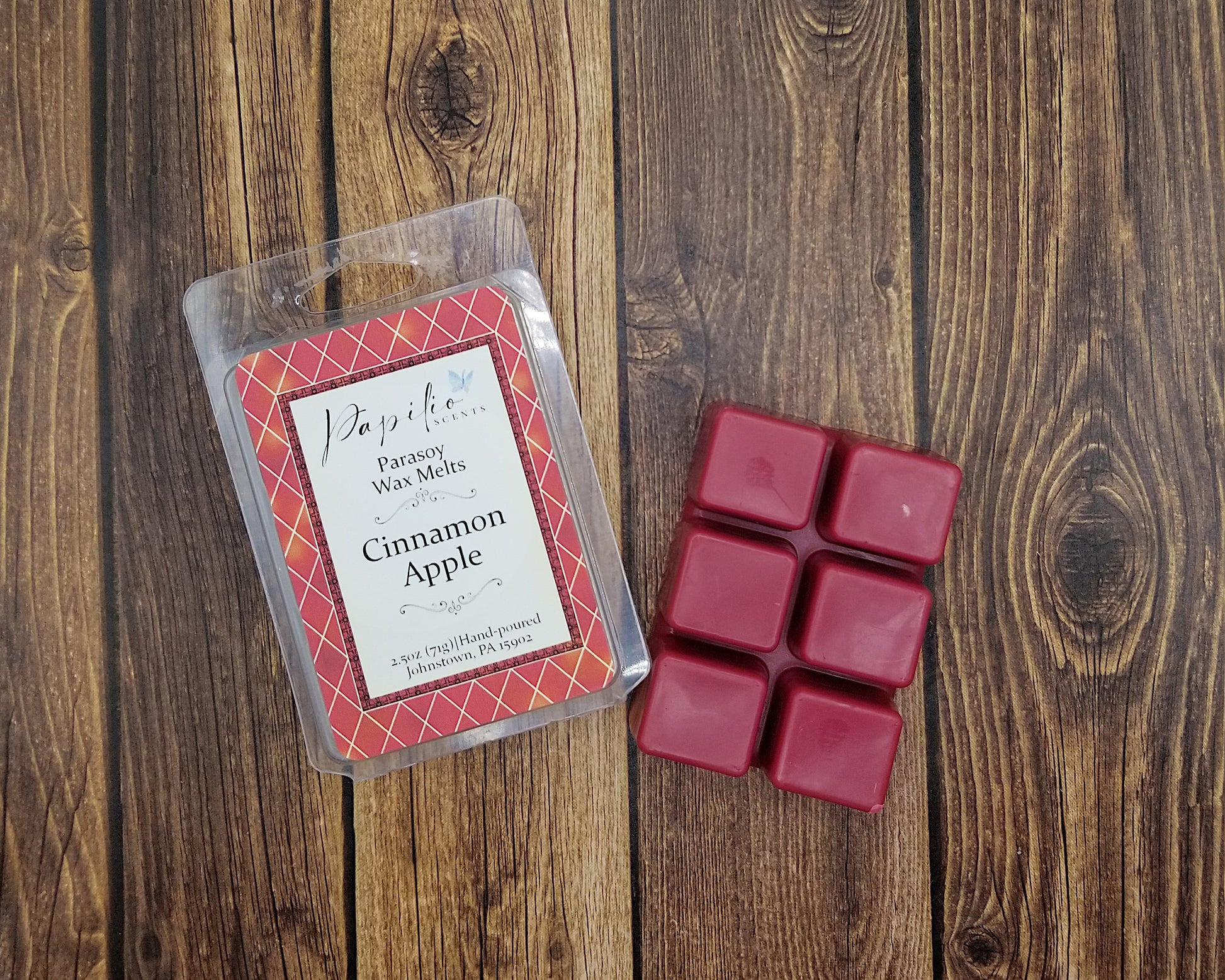These wax melts are made with a mix of paraffin and soy (parasoy) wax to help give it a longer melt time while keeping the scent on the stronger side. Due to the handmade nature of these wax melts, there will be slight differences between melts such as glitter placement, drizzle location, and color.