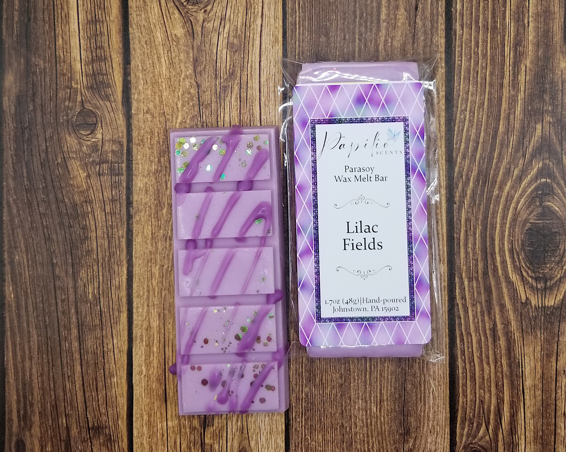 These wax melts are made with a mix of paraffin and soy (parasoy) wax to help give it a longer melt time while keeping the scent on the stronger side. Due to the handmade nature of these wax melts, there will be slight differences between melts such as glitter placement, drizzle location, and color.
