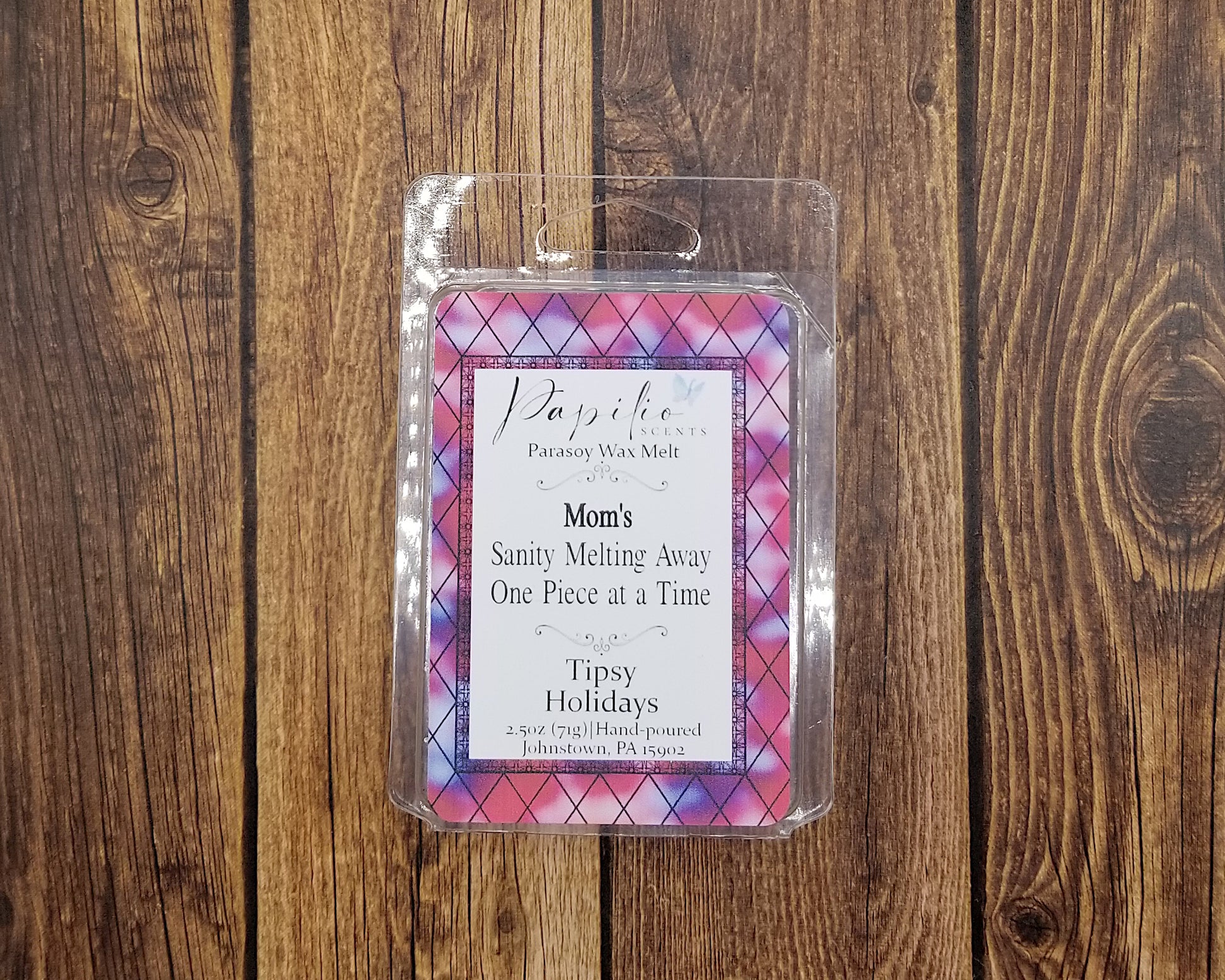 These wax melts are made with a mix of paraffin and soy (parasoy) wax to help give it a longer melt time while keeping the scent on the stronger side. Due to the handmade nature of these wax melts, there will be slight differences between melts such as glitter placement, drizzle location, and color.