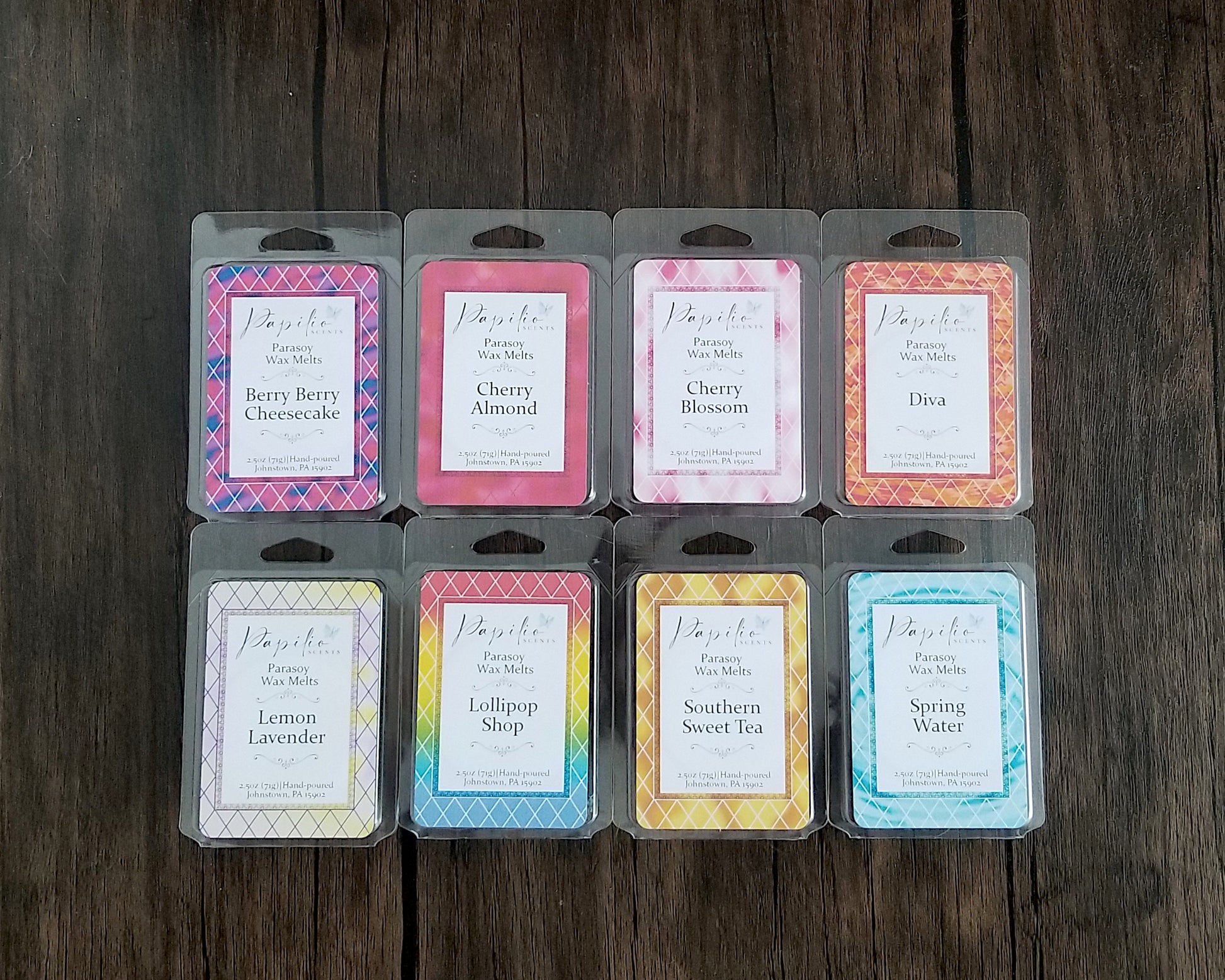 This bundle comes with 1 each of the 8 wax melt scents released in the 2026 Blossoming Spring collection. This bundle is for the clamshells, and each clamshell has at least 2.5oz of wax in it.