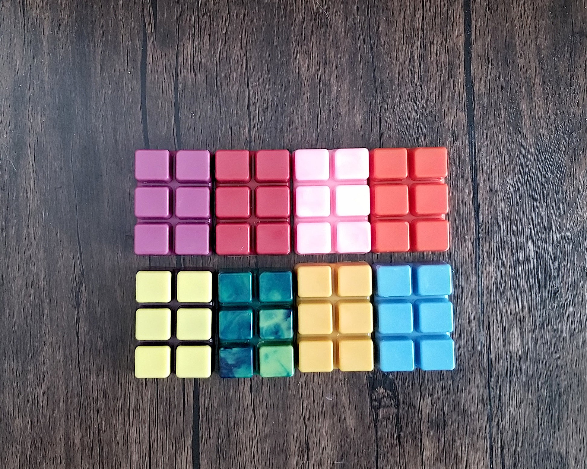 These wax melts are made with a mix of paraffin and soy (parasoy) wax to help give it a longer melt time while keeping the scent on the stronger side. Due to the handmade nature of these wax melts, there will be slight differences between melts such as glitter placement, drizzle location, and color.